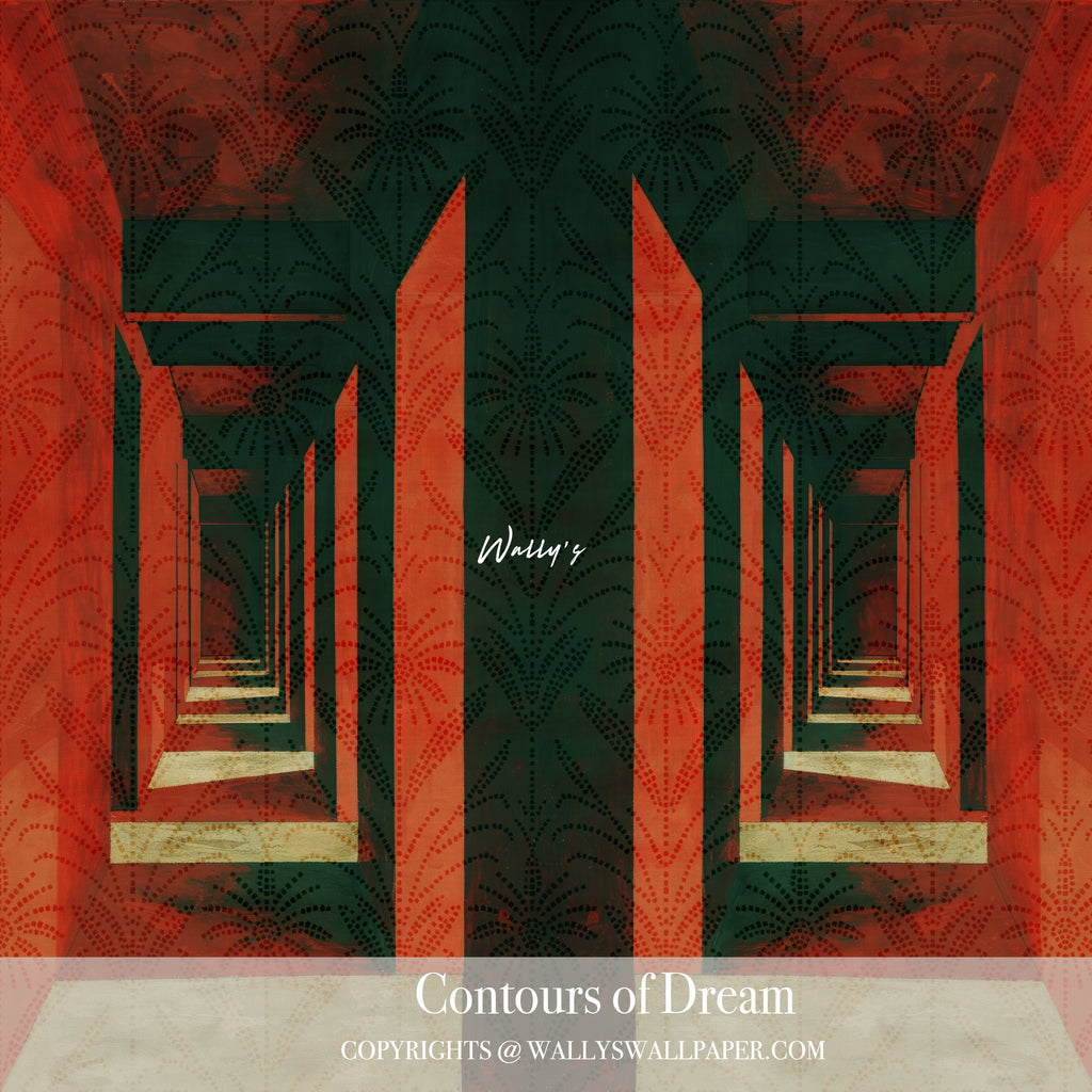 Contours of Dream by Wally’s Wallpaper is an evocative fusion of geometry, portraiture, and imagination. This bold design transforms any wall into a statement of depth and reflection — blending surreal architecture, layered light, and human expression.
